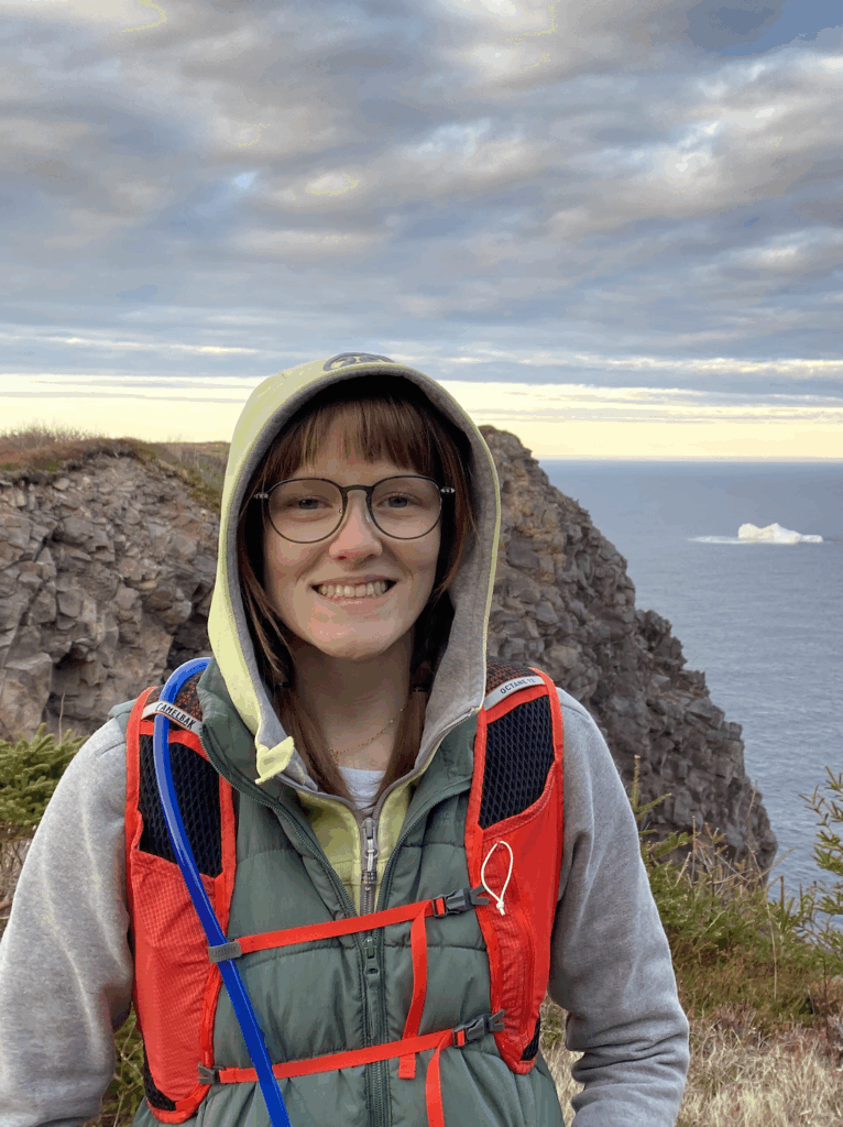 (settler) Hello, I’m Lana. I’m a settler from the traditional unceded and unsurrendered territory of the Anishinabe Algonquin Nation. I’ve moved to the ancestral homelands of the Beothuk and the Mi’kmaq, the island of Newfoundland, to do my Master’s at CLEAR. I’m working on the Nunatsiavut plastic pollution monitoring project. I’m checking if there is plastic in the ice near Nain, and am researching anticolonial data visualization.